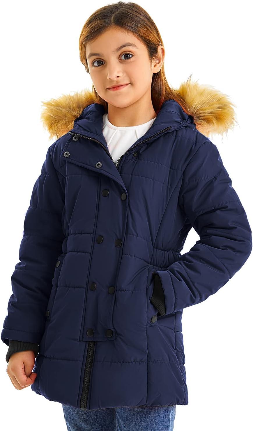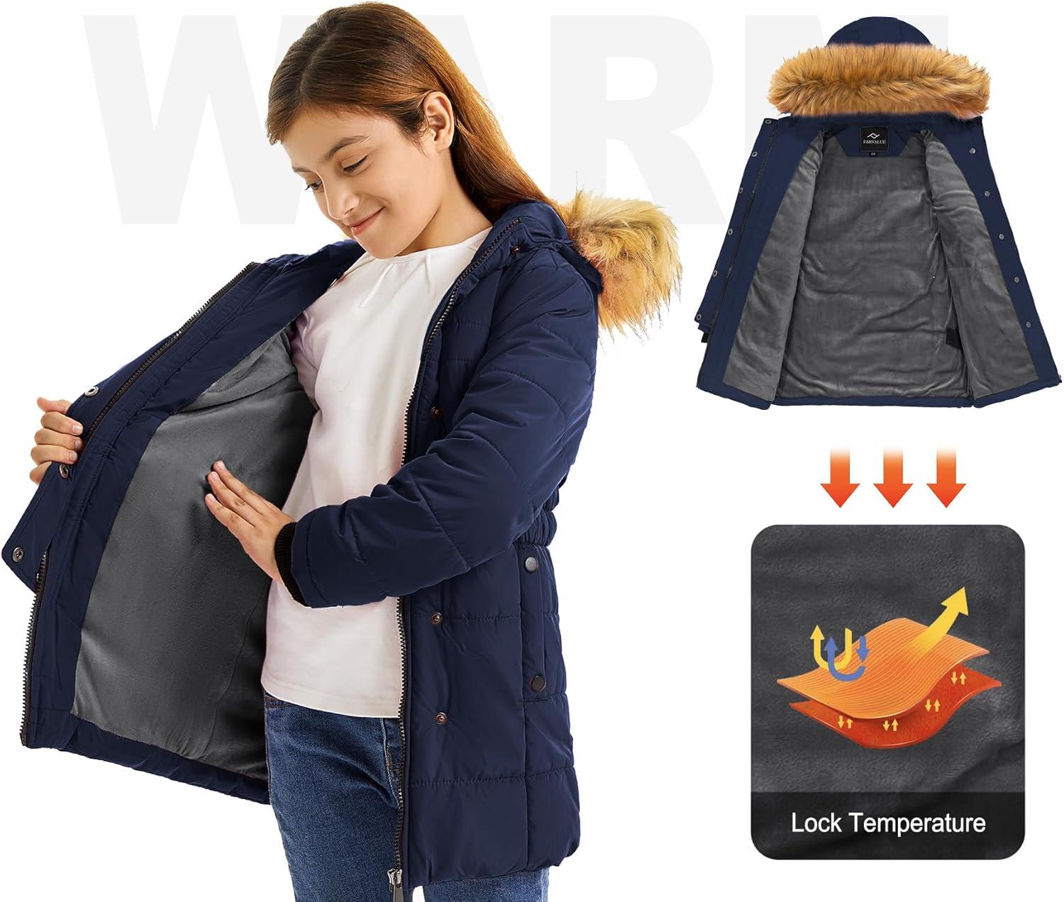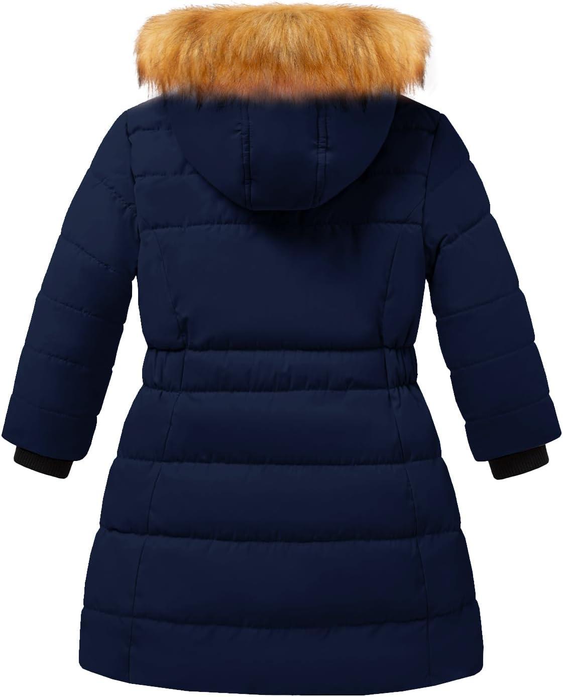 FARVALUE Girls Warm Winter Coats Thicken Long Parka Fleece Puffer Jacket Hooded Quilted Windbreaker(Navy)