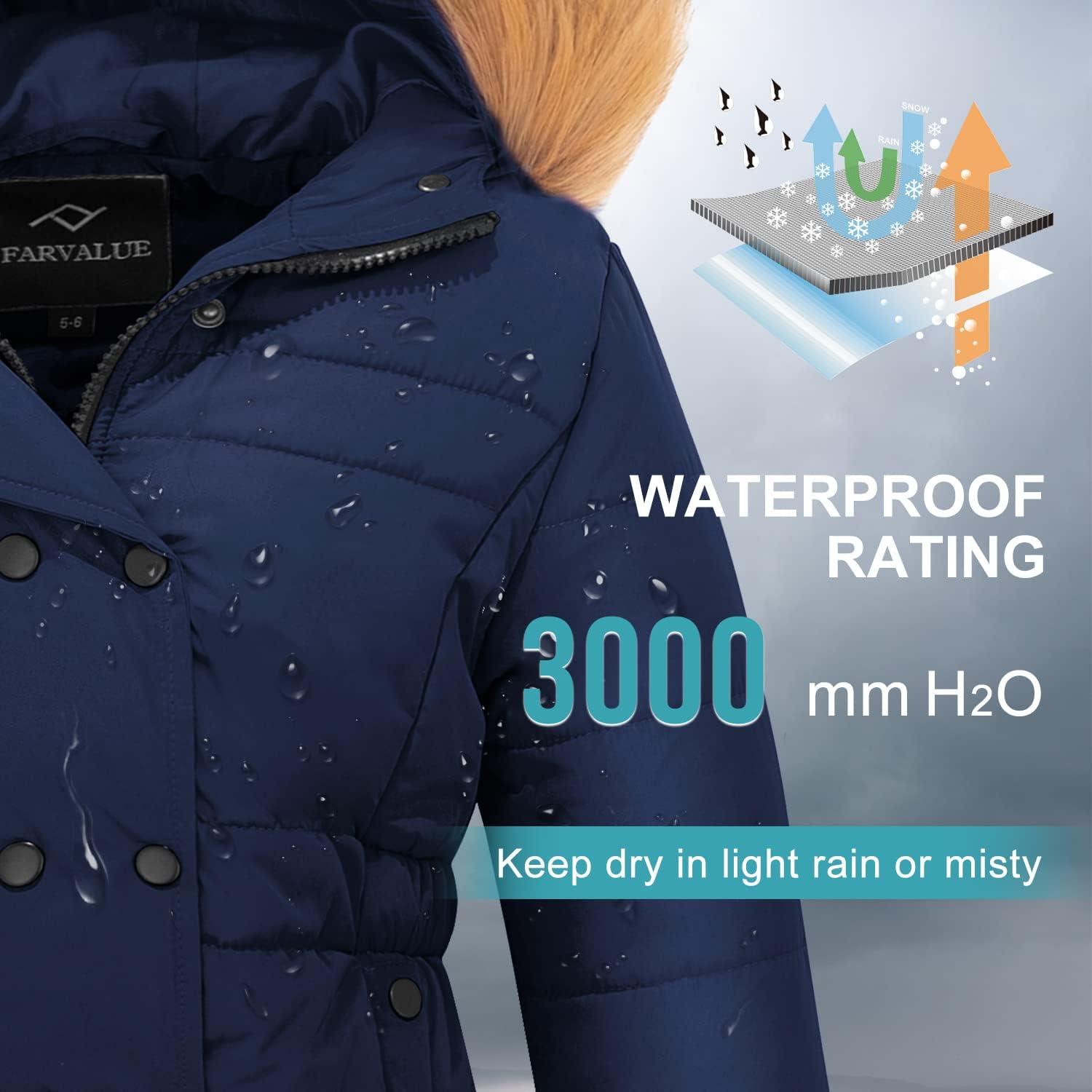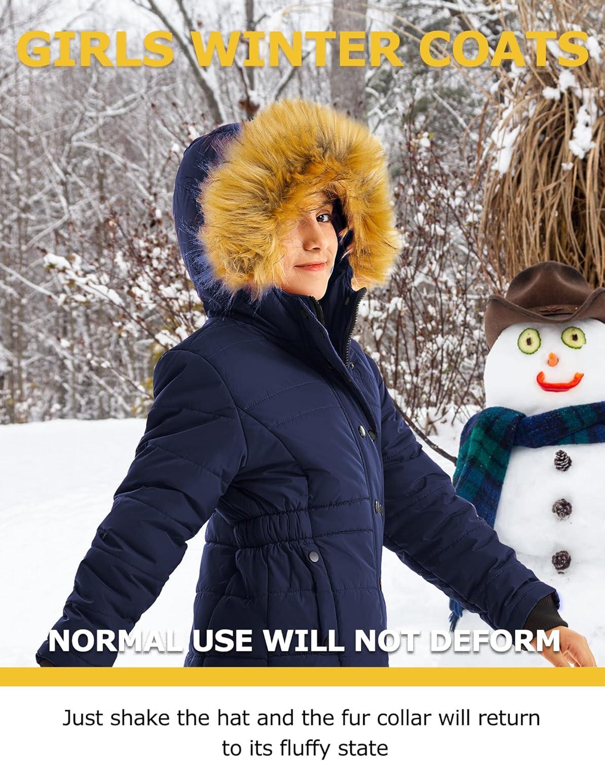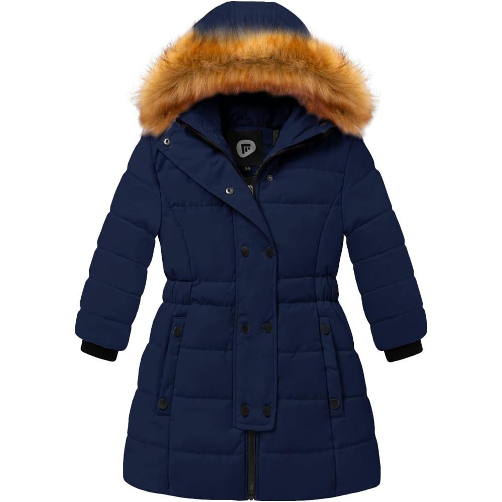 FARVALUE Girls Warm Winter Coats Thicken Long Parka Fleece Puffer Jacket Hooded Quilted Windbreaker(Navy)