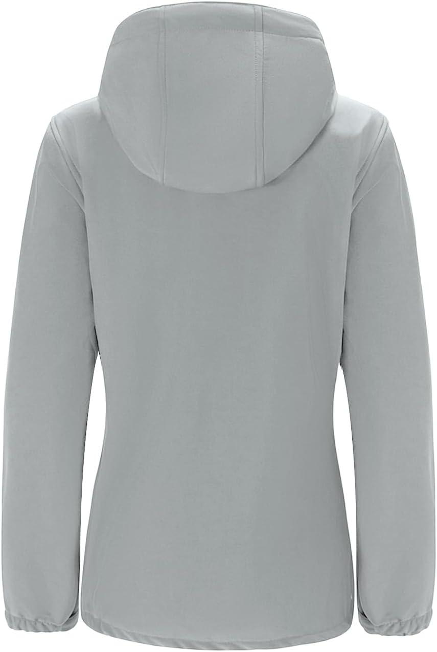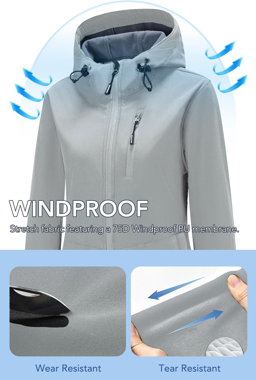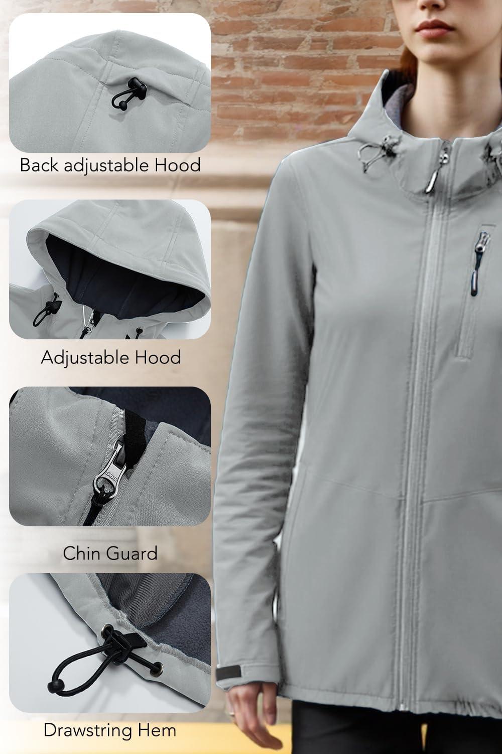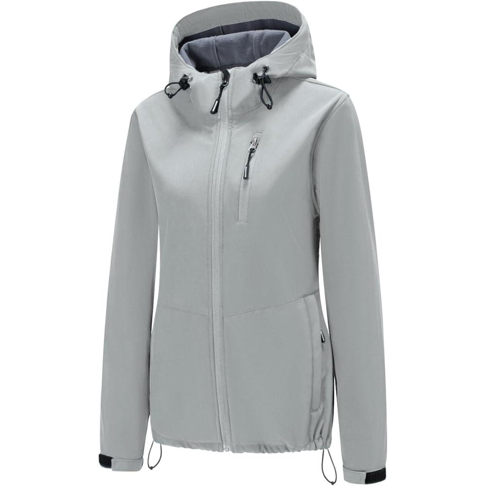 FARVALUE Womens Lightweight Softshell Jacket Hooded Waterproof Windproof Coat Fleece Lined Insulated Winbreaker Hiking(Light Grey)