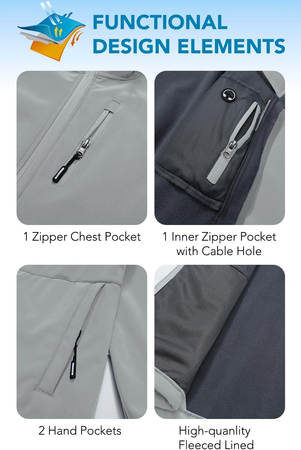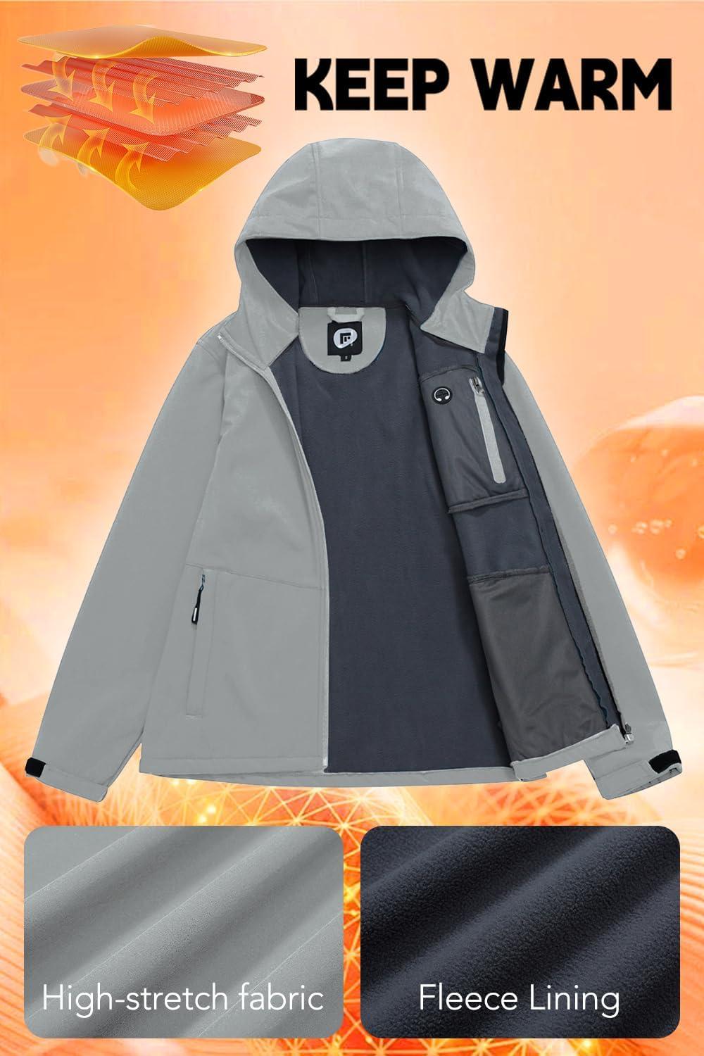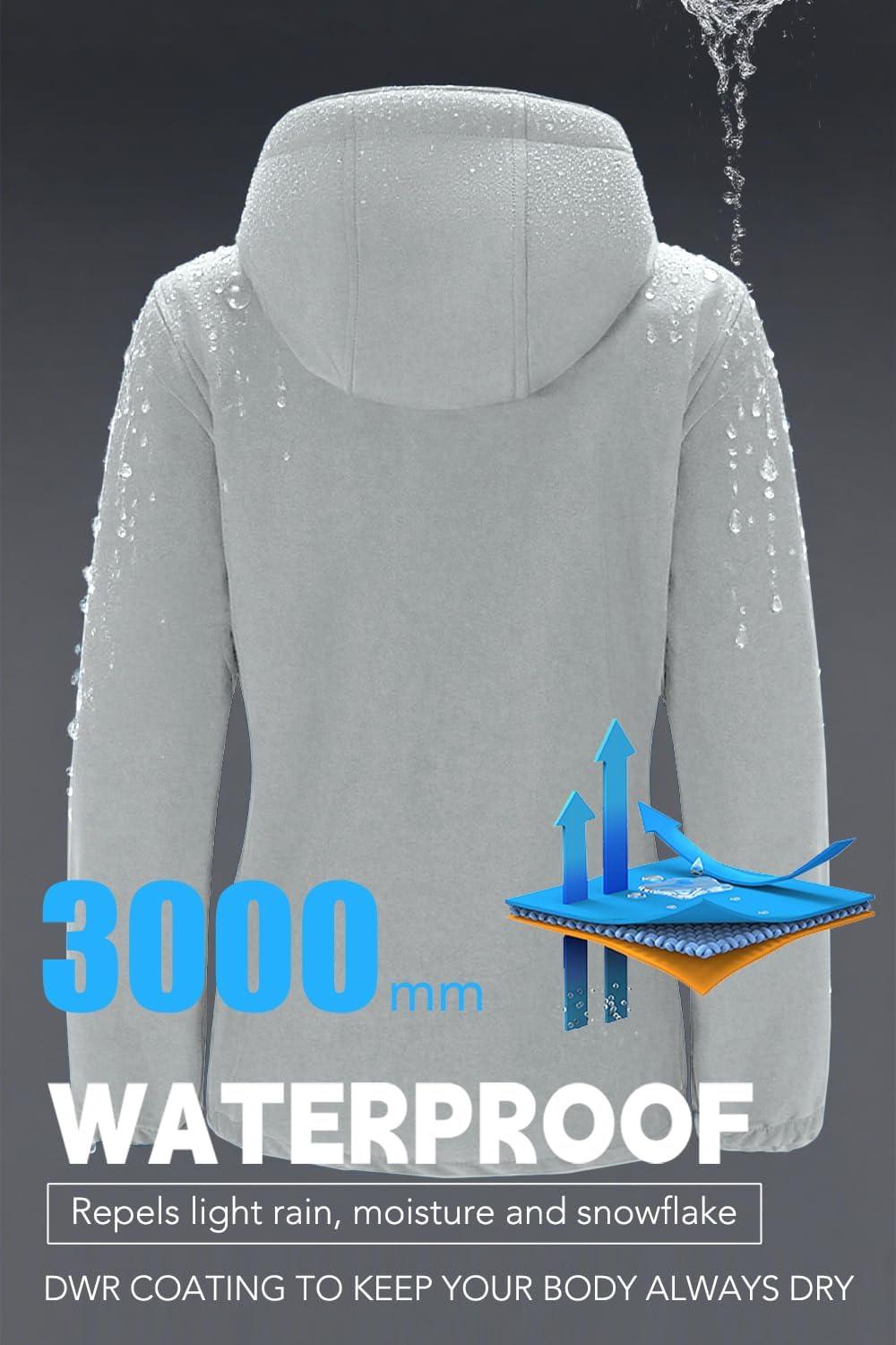 FARVALUE Womens Lightweight Softshell Jacket Hooded Waterproof Windproof Coat Fleece Lined Insulated Winbreaker Hiking(Light Grey)